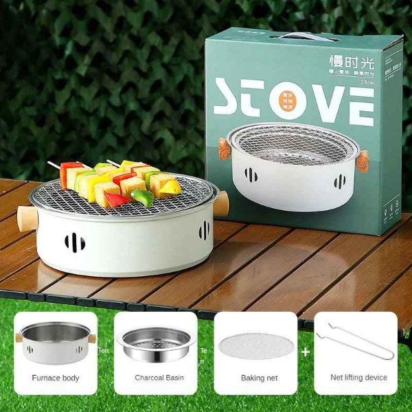 Roštiljajte bezbedno sa poverenjem! Prenosivi roštilj na ugalj ima ručku od punog drveta, podlogu koja se ne kliza i ne zahteva alate za postavljanje. Uživajte u obrocima bez brige o stabilnosti.